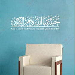 Hasbunallahu Quranic AyatSize: 35 x 75 cmColor: Black, Golden & WhiteMaterial: Acrylic & Decorative Looking MirrorLight Weighted & Durable MaterialEasy to InstallCan be applied to any kind of surface such as painted wall, wallpaper, PVC Panel, glass & Ceramics tiles etc.Install ..